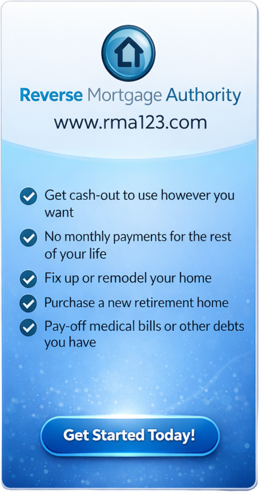 For homeowners 55 years and over whom are seeking to eliminate their monthly mortgage payments, get cash out, pay off other debts, or remodel home. **62 years old for TX residents.