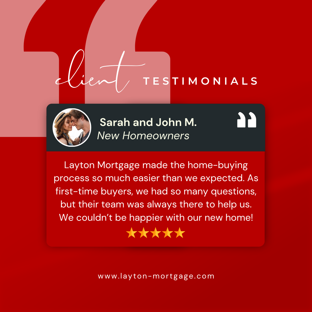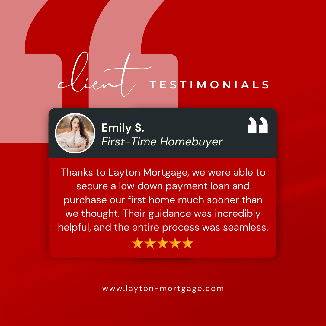 We know that one size doesn’t fit all. Layton Mortgage offers flexible financing solutions, including FHA loans, conventional loans, and down payment assistance programs – all designed with first-time homebuyers in mind. We'll help you find the best mortgage option for your financial situation.